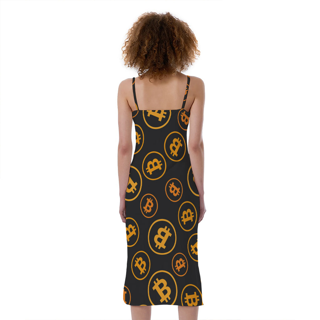 Bitcoin Cryptocurrency Pattern Print Slim Fit Midi Cami Dress