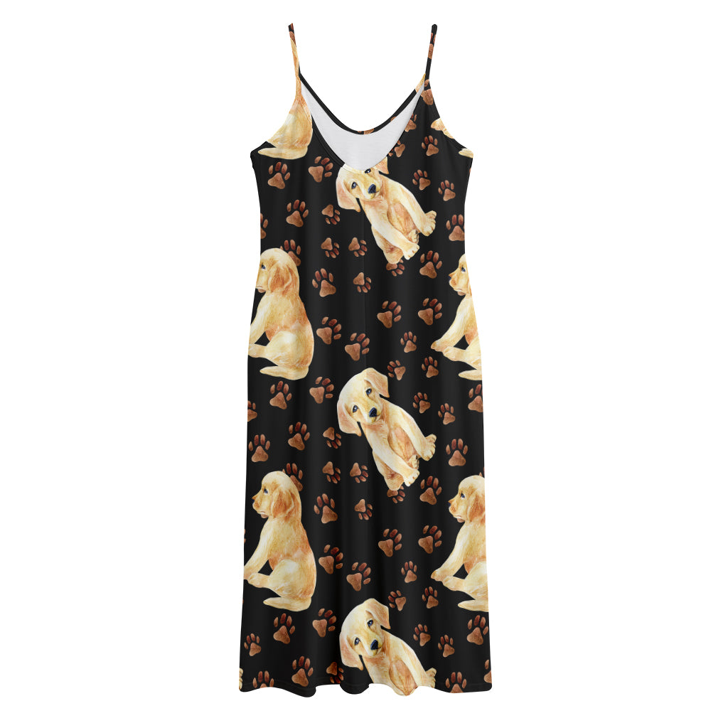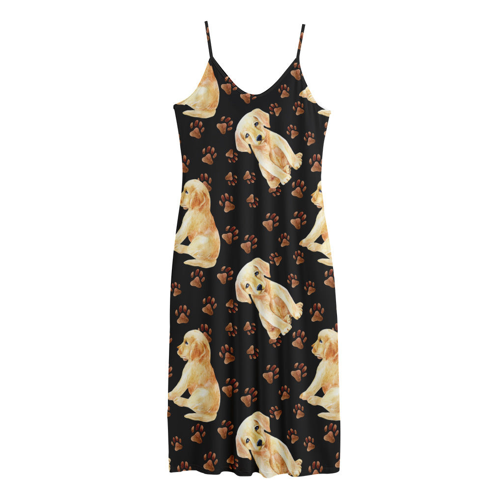 Labrador Retriever Puppy Pattern Print Jersey Midi Cami Dress