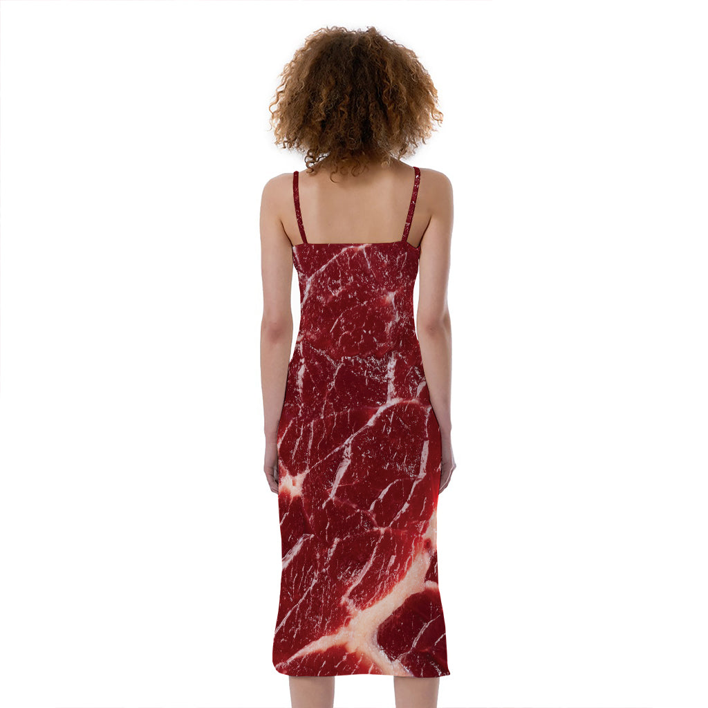 Red Meat Print Slim Fit Midi Cami Dress