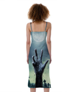 Zombie Hand Rising From Grave Print Slim Fit Midi Cami Dress
